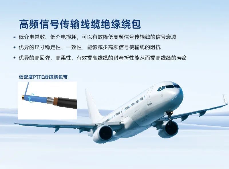 展会现场,富程威科技还带来了一系列应用方案。针对高频信号传输线缆绝缘应用,富程威PTFE产品不仅能够提供优异的电气性能,还具备出色的机械强度和耐久性,满足了不同应用场景下的需求。另外,针对航空安装线绝缘、护套的应用方案也备受关注。富程威科技的解决方案不仅能够有效防止电弧击穿,提供可靠的安全保障,采用绕包工艺还能使线缆做的更薄,重量更轻,给飞机减轻空间和重量压力,赋能航空航天领域发展。