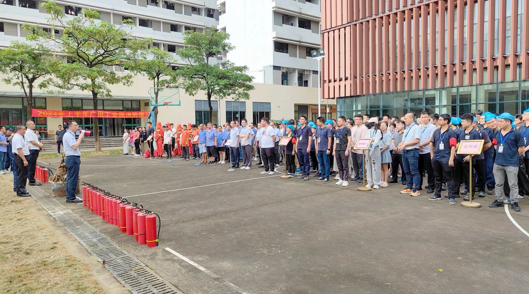 演练过程中,由安全管理部主管为大家讲解了灭火器、消火栓的使用方法和安全注意事项,各部门积极参与灭火实战演练。