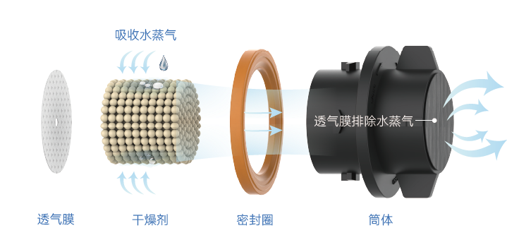 主动吸湿:在内外无显著压差时,CMD的通道保持关闭状态,干燥剂主动吸收车灯内部的水蒸气,防止凝露形成。