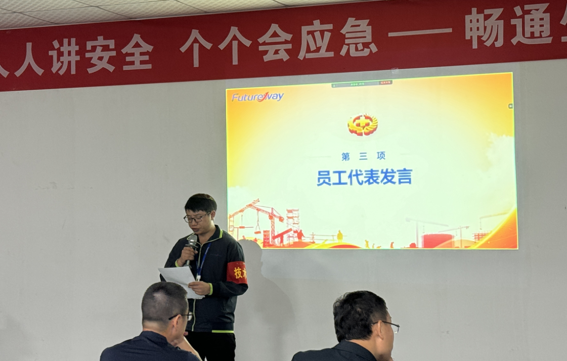 6月4日上午10点,随着2024年“安全生产月”活动启动大会的召开,富程威科技正式拉开了“安全月”活动的序幕。公司张逸总经理出席活动并做动员讲话,各部门负责人、管理人员、员工代表100余人参与启动仪式。